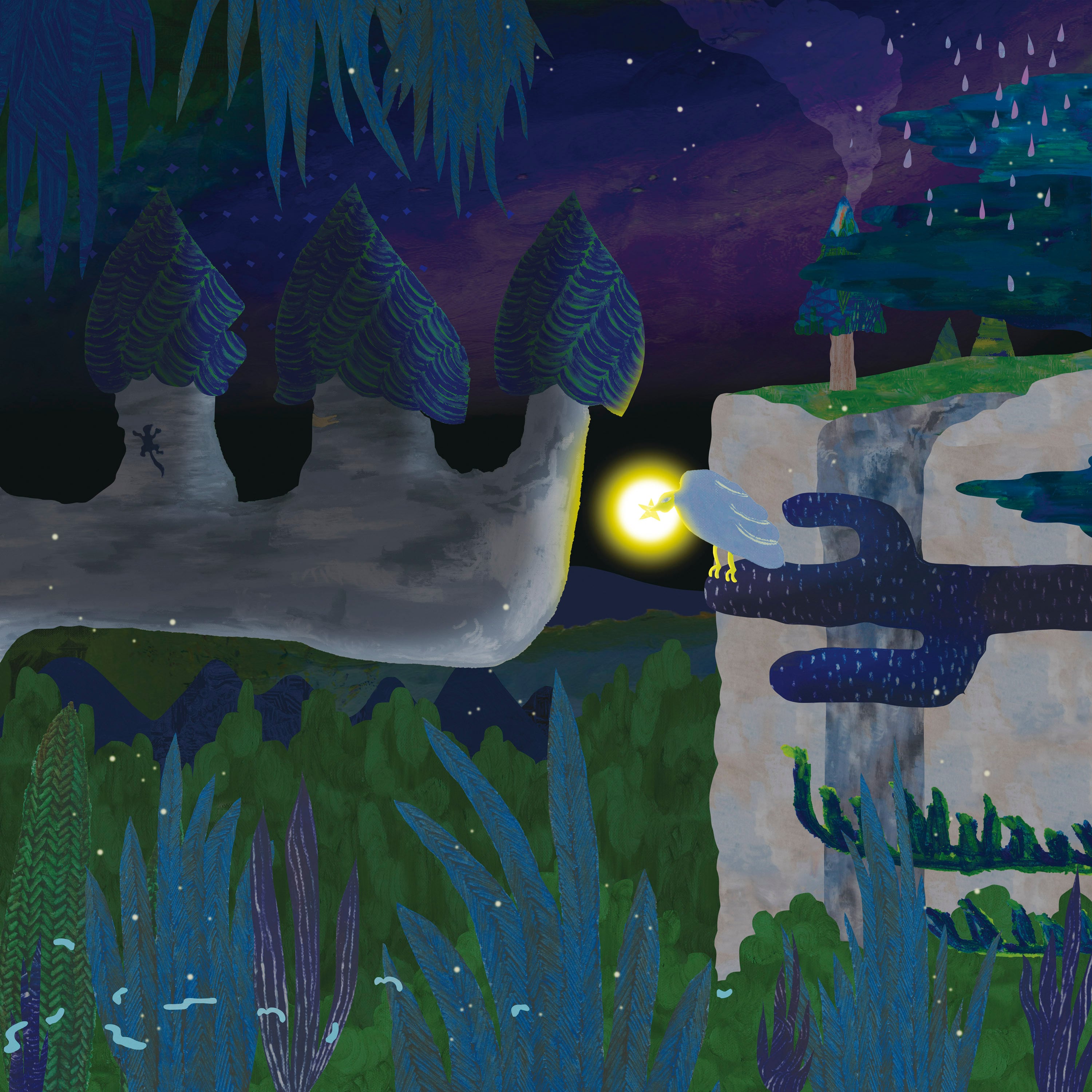 森で見つけた大切な宝もの。オリジナルのクレヨン画を素材に使ったデジタルコラージュ作品。